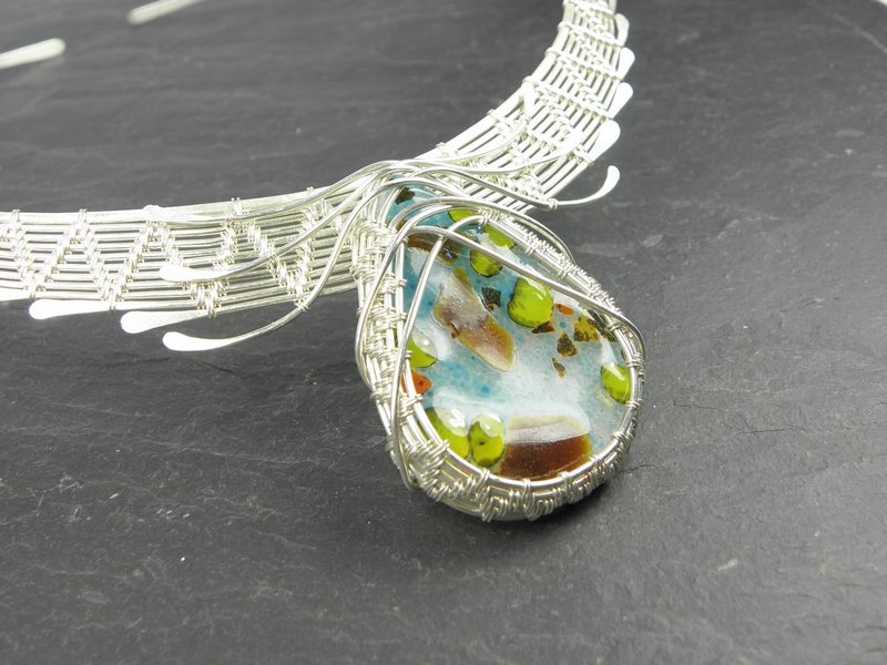 La demande pour des bijoux en verre ne cessant de croître, j’ai décidé de m’y consacrer pleinement. Cependant, mes premières tentatives étaient souvent décevantes en raison de la mauvaise qualité des apprêts et des colles qui ne tenaient pas. Déterminée à trouver une solution, j’ai recherché des techniques complémentaires pour mettre en valeur mes cabochons de verre fusionné.